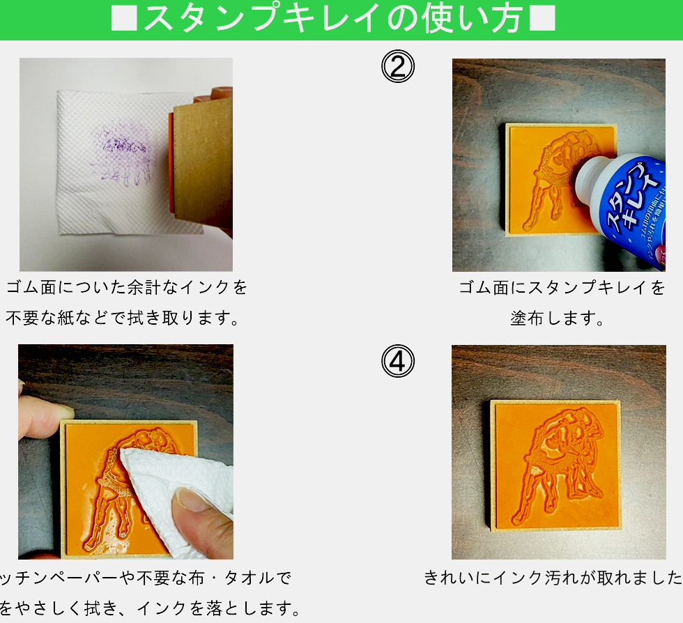 塗ってふくだけ!ゴム印の印面に付いたインクや汚れを簡単に落とします。